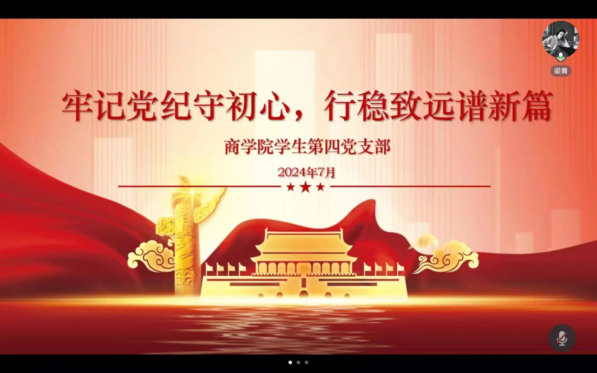 梁菁以“牢记党纪守初心,行稳致远谱新篇”为主题,带领大家学习了新修订的《中国共产党纪律处分条例》基本内容,并强调了开展党纪学习教育的必要性和重要性。她提出,毕业生党员要继续坚持“讲党性、守党规、严党纪”,切实规范自身言行举止,进一步明确党员职责,落实党纪学习教育要求,坚定理想信念,在新的人生阶段继续发挥先锋模范作用。