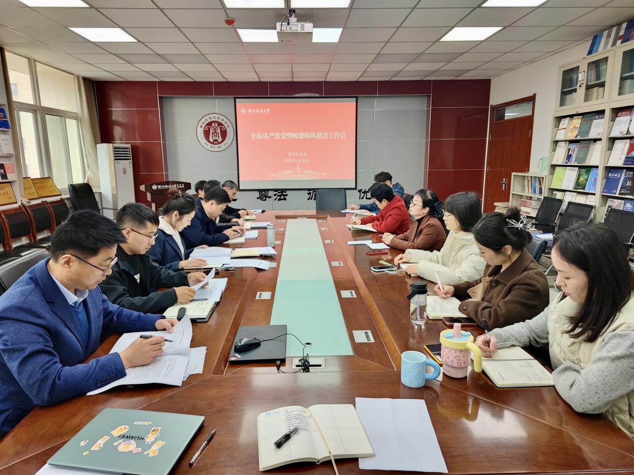 3月23日,MX动漫 党委召开全面从严治党暨师德师风建设工作会,学院领导班子、行政人员、学工干部、各支部书记参加会议。