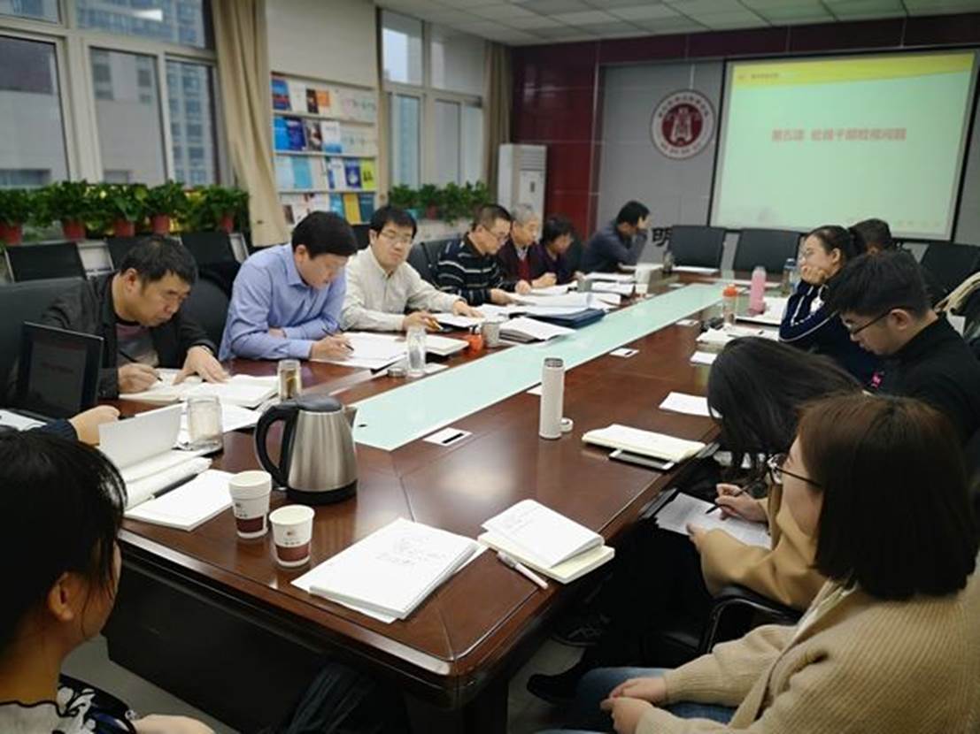 2019年11月8日,MX动漫 党委召开“不忘初心、牢记使命”主题教育检视问题会,校巡回一组组长刘育龙、院领导班子成员、各党支部书记、教师代表、学生代表参会。会议由院党委书记路建潮主持。