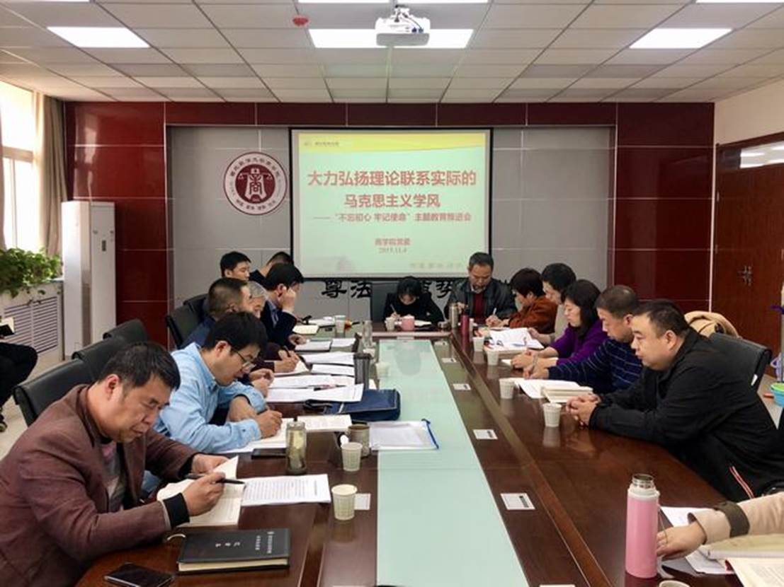 根据主题教育工作安排,11月4日,MX动漫 党委中心组及扩大成员在学院资料室召开“大力弘扬理论联系实际的马克思主义学风——不忘初心,牢记使命”主题教育推进会。校巡回指导组一组组长刘育龙、院领导班子成员、各党支部书记、各系部负责人、全体学工干部、行政人员及学生党员代表参加会议,会议由院党委书记路建潮主持。