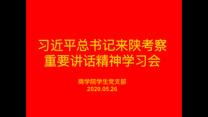 学生党支部认真贯彻校党委工作要求,深入学习了习近平总书记来陕考察重要讲话重要指示精神的重大意义。周老师指出,大家要认真学习和体会习近平总书记来陕考察讲话精神,要切实把思想和行动统一到习近平总书记重要讲话精神上来,不断增强“四个意识”、坚定“四个自信”、做到“两个维护”,坚定不移沿着习近平总书记指引的方向奋勇前进。