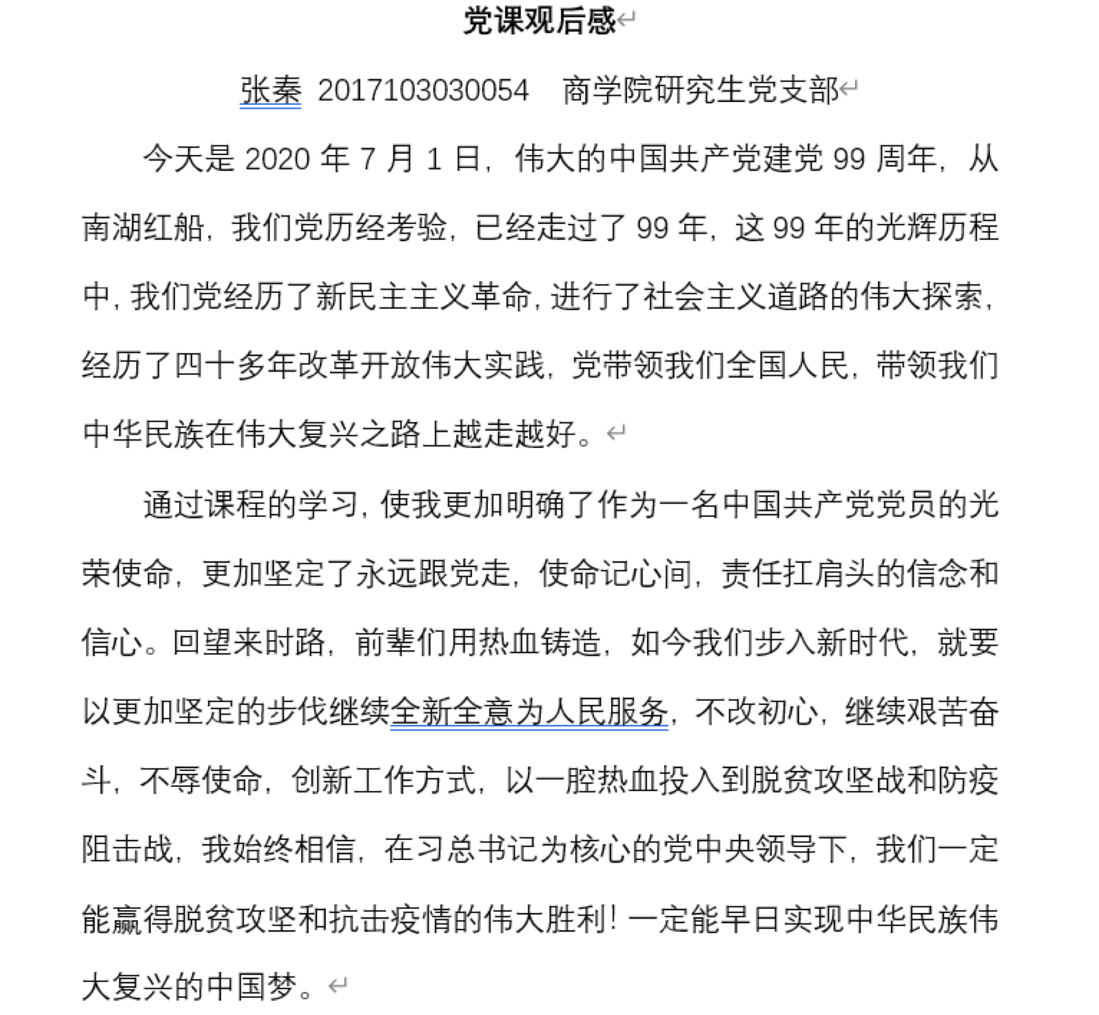 研究生党支部的32名正式党员、12名预备党员以及14名入党积极分子都积极认真的进行了学习,并在结束后进行热烈讨论,抒发自己的学习感悟。通过本次学习活动,大家对投身抗疫一线的工作者致以更加崇高的敬意,同时更加坚信每个党支部都是一个战斗堡垒,每个党员都是一面旗帜,也更加深刻地认识到作为一名共产党员所担负的使命和责任,更加坚定要立志为祖国事业添砖加瓦。大家相信,在党中央的领导下,中国人民万众一心,众志成城,凝聚起的必胜信念,必将赢得这场抗疫阻击战的胜利。