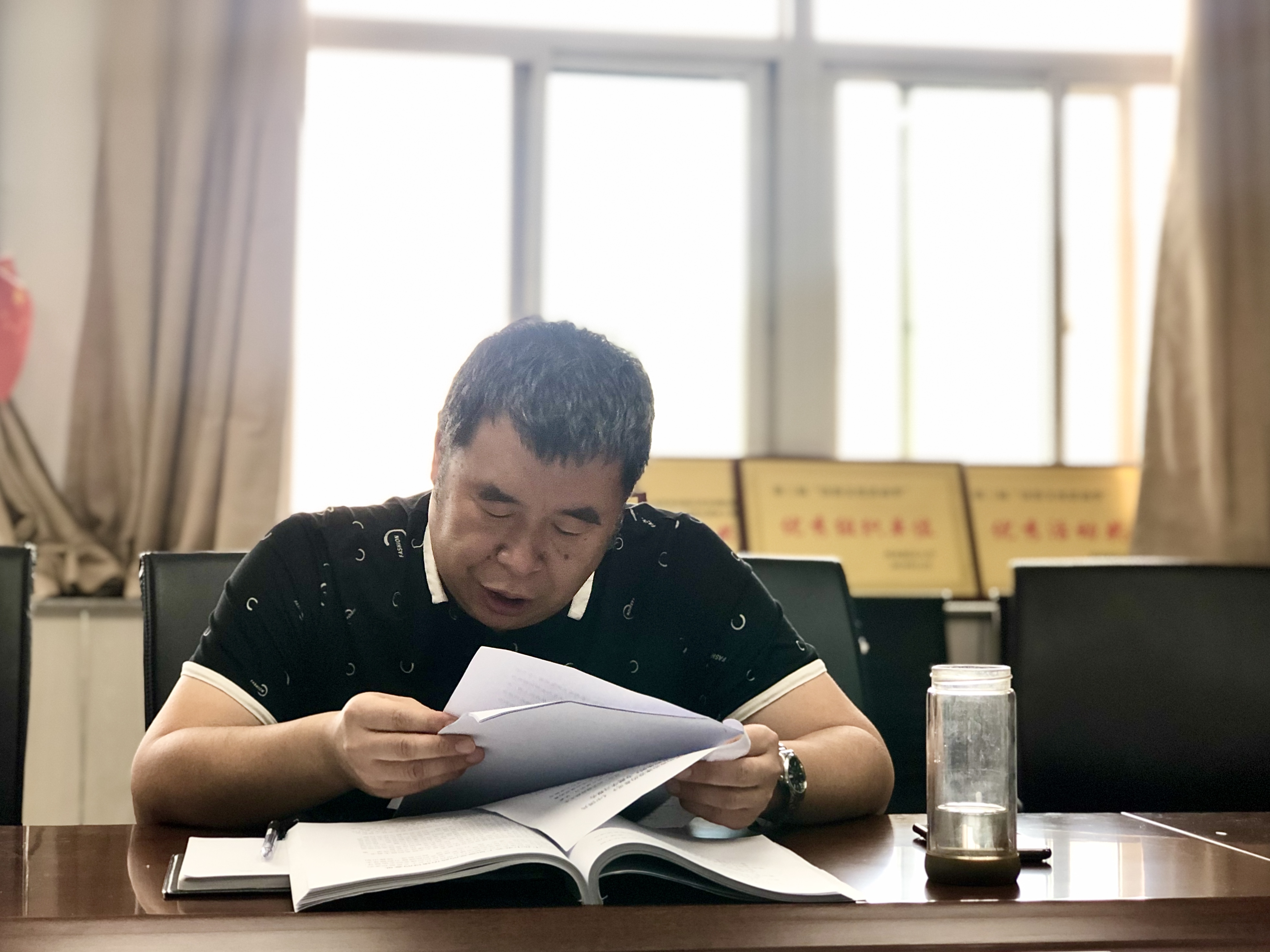 路建潮领学“深入贯彻落实中央‘两个通报’精神 切实做好赵正永严重违纪违法案以案促改工作”文件,并就文件要求做了进一步安排部署。