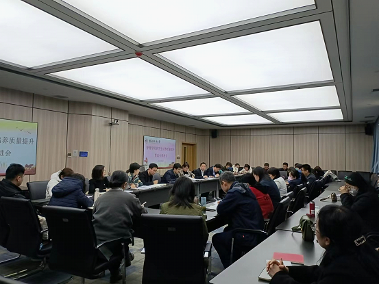 李晓宁院长带领全体参会老师学习了教育部、研究生院及管理学院关于研究生培养质量的相关文件,强调导师责任制,学位论文过程化管理等要求,提出健全责权统一的管理体系、建立培养质量溯源机制。
