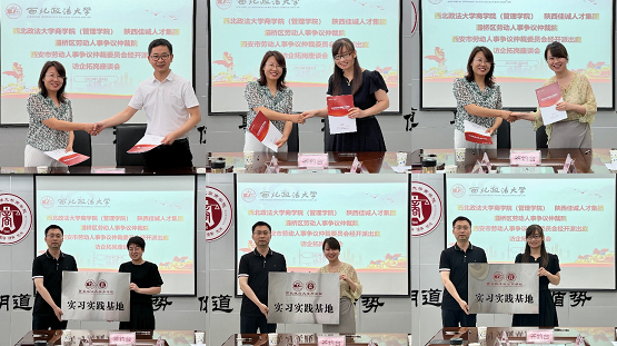 座谈结束后,学院与陕西佳诚人才集团、灞桥区劳动人事争议仲裁院、西安市劳动人事争议仲裁委员会经开派出庭签署合作协议,并为各单位授予实习实践基地牌匾。