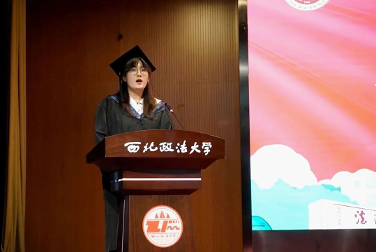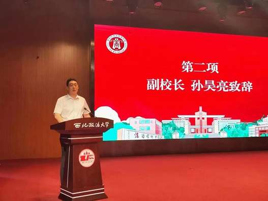 副校长孙昊亮致辞。他指出,在过去的几年里大家共同见证了许多中国发展的重要的历史时刻,2023届毕业生在西法大校园里度过的青春岁月也尤为不平凡。他寄语全院毕业生守住初心、挺膺担当,保持奋斗、敢于拼搏,保持热爱、风雨兼程。