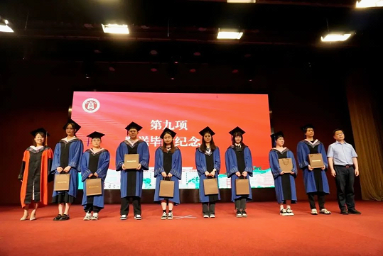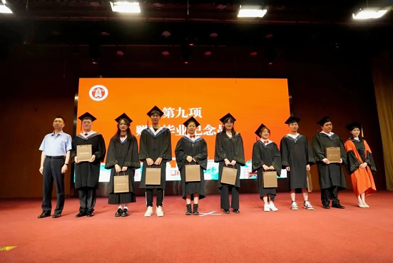 学院领导为毕业生们赠送毕业纪念品。