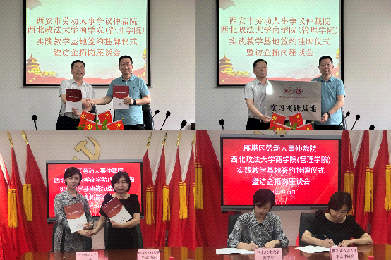 为深入拓展就业实践岗位资源,精准发掘校企合作契合点,7月14日MX动漫 到访西安市劳动人事仲裁院与雁塔区劳动人事争议仲裁院,进行实践基地签约挂牌仪式与访企拓岗座谈会。西安市劳动人事仲裁院院长方勇、雁塔区劳动人事争议仲裁院院长田辉、MX动漫 副院长杨柳青、党委副书记蔺媛、教师代表及实习生代表参会。