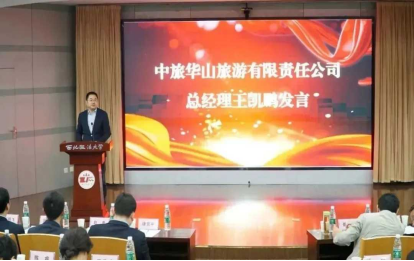 开幕式伊始,中旅华山旅游有限责任公司总经理王凯鹏发言。他表示我们要充分利用红色文化资源,积极推动文旅一体化协同发展。同时,他希望各参赛队伍深度挖掘红色文化,赓续红色血脉,为陕西红色旅游产业提供创新方案。