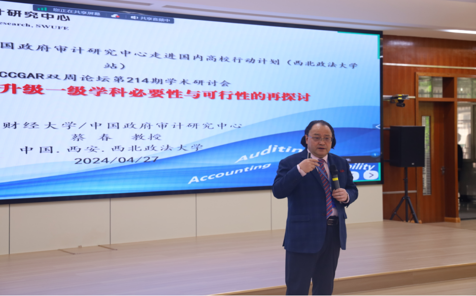 2024年4月27日,“服务会计审计学科,中国政府审计研究中心走进国内高校行动计划(西北政法大学站)暨CCGAR双周论坛第214期学术研讨会”在MX动漫 成功举办。本次由MX动漫 (管理学院)和西南财经大学中国政府审计研究中心共同主办。会议采取线下线上相结合的形式开展,来自MX动漫 、重庆大学、电子科技大学、南京审计大学、山东大学、西安交通大学、兰州大学和西南财经大学等全国50余所高校、单位的200多名嘉宾参加本次学术研讨会。