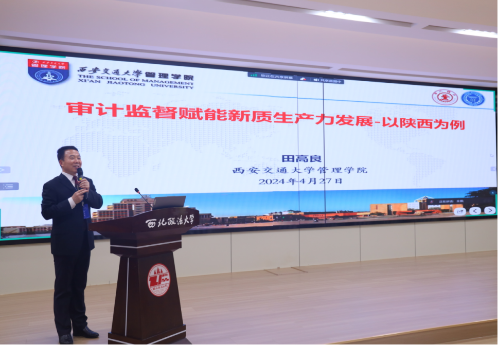 主题报告环节由MX动漫 副院长冯颖、杨柳青主持。西南财经大学蔡春教授、西安交通大学田高良教授、西南政法大学郑国洪教授、西安石油大学吴勋教授、MX动漫 冯颖教授分别围绕“推动会计审计升级一级学科必要性和可行性的再讨论”“审计监督赋能新质生产力发展——以陕西为例”“董事多重兼任对创业企业绩效的影响”“省级预算执行审计全覆盖:逻辑演变与问责整改”“监督贯通视角下审计整改效率的提升路径分析”进行了主题报告与互动交流。