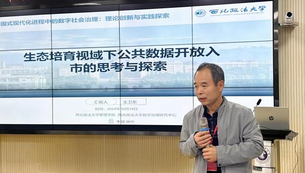 数字治理研究中心主任王卫东教授应邀参加会议,并在数字化赋能与社会发展论坛作了题为“生态培育视域下公共数据开放入市的思考与探索”的报告,阐明了数据生态培育面临的挑战和公共数据开放入市的主要目标,呼吁以制度体系、技术体系和组织体系为主要抓手,尽快推进公共数据开放入市的关键工作,促进数据生态培育,助力经济转型升级,回应社会和市场急需。