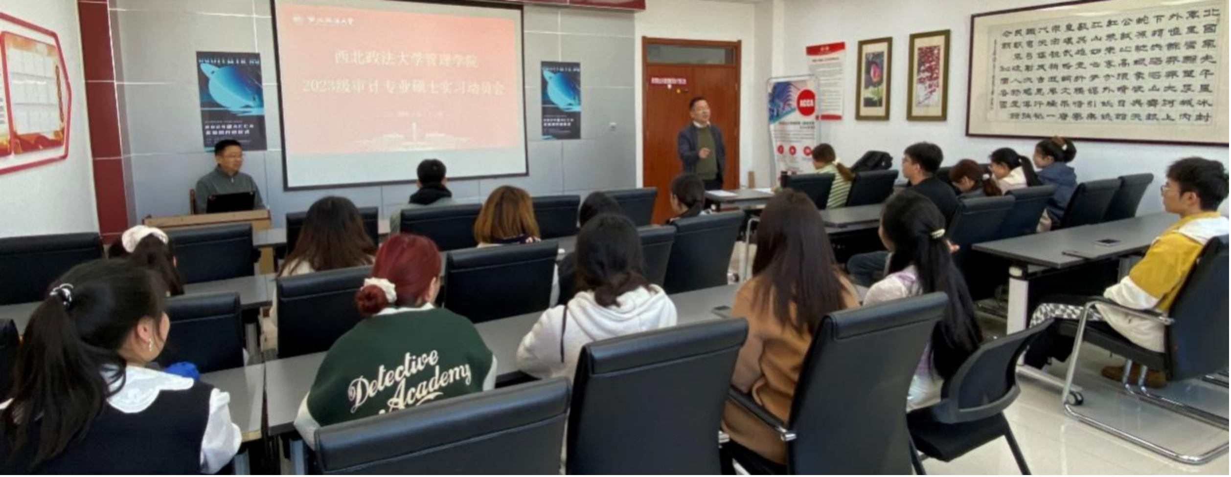 (管理学院)2023级审计专业硕士学生。会议由审计专硕教育中心副主任刘维政主持。