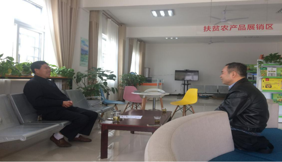 与汉山村党支部书记李文忠亲切交谈