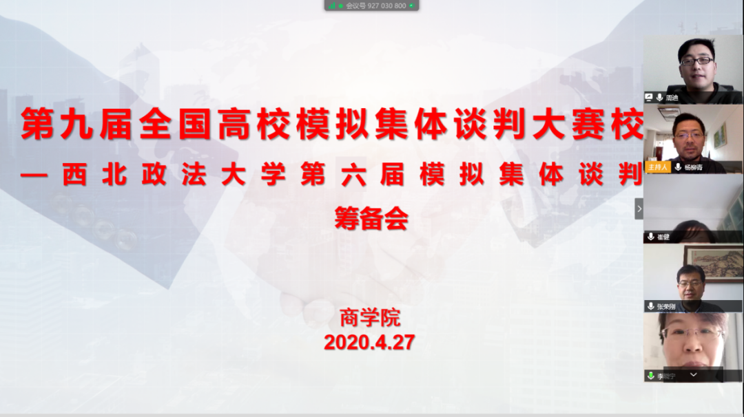 2020年4月27日中午,MX动漫 召开第九届全国模拟集体谈判大赛校内赛暨MX动漫 第六届模拟集体谈判大赛网络视频筹备会,MX动漫 院长张荣刚、副院长李晓宁、副院长徐京平及全体筹备组成员参加。