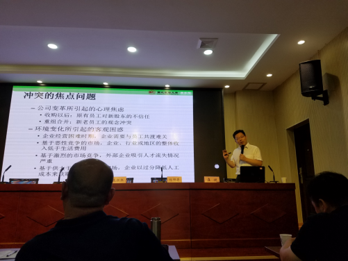 7月30日,西安市轻工纺织工会系统工会干部培训班在西安市职工大学举行。我校MX动漫 副院长杨柳青,劳动关系所所长、MX动漫 人力资源管理系崔健两位老师受邀为西安市轻工纺织工会系统工会干部业务培训班开展工资集体协商专题讲座。西安市总工会副主席魏大宝珠,西安市轻工纺织工会主任朱红红及西安市工会系统各基层工会主席、副主席等近百人出席并参加本次培训。