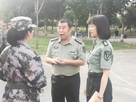 副院长刘智伟2020级辅导员梁菁老师一起来到训练场为大家发放身份牌并做叮嘱和要求。