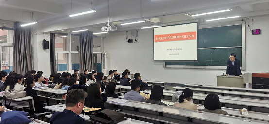 为了提高研究生学位论文的质量,加强论文写作的流程管理,实现高质量人才培养目标,5月27日下午MX动漫 在雁塔校区召开研究生学位论文质量提升专题工作会。会议由学院院长李晓宁主持,公共管理一级学科带头人张荣刚副校长、部分研究生导师、学科秘书及80多名研究生参加会议。