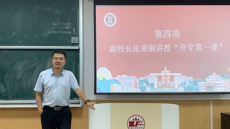 会上,张荣刚为2023级研究生讲授开学第一课,他分析了当前我校研究生的学习和发展情况,指出作为刚入学的新生,要端正学习态度,抓住难得的深造机会,认真学习研究,不虚度光阴,不辜负年华。他强调,师生是学术共同体,要做到相互负责,导师要严格要求学生、悉心指导,学生要明确目标、久久为功。他希望同学们在学校优良传统的熏陶下、在导师的带领下,勇于开拓创新,练就过硬本领,成长为堪当时代重任的栋梁之材。