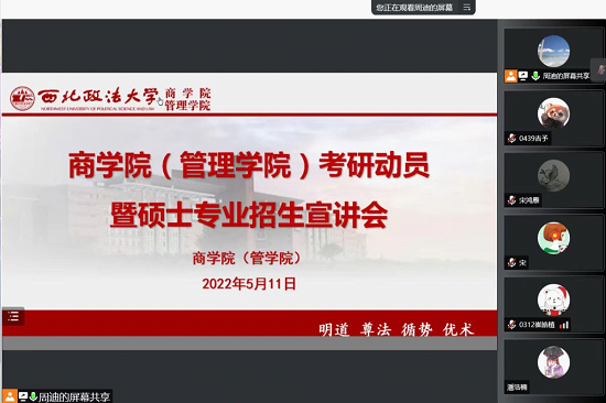 5月12日晚上,MX动漫 线上组织召开考研动员暨硕士专业招生宣讲会。MX动漫 副校长、公共管理一级学科负责人张荣刚教授,MX动漫 院长、社会保障专业负责人李晓宁教授,MX动漫 党委书记朱茂,MX动漫 副院长、社会保障专业导师代表杨柳青副教授,土地资源管理专业导师组长尚海洋教授,数字治理专业导师代表王卫东教授,行政管理专业导师组长谢斌教授,教育经济与管理专业导师代表宋鸿雁研究员,应急管理专业导师组长张夏恒教授,审计学专业导师代表张瑛副教授,审计专硕导师组长李红兵副教授,公共管理导师组长胡信布教授出席会议。会议由学院2019级辅导员周迪主持,200余名同学在线参会。