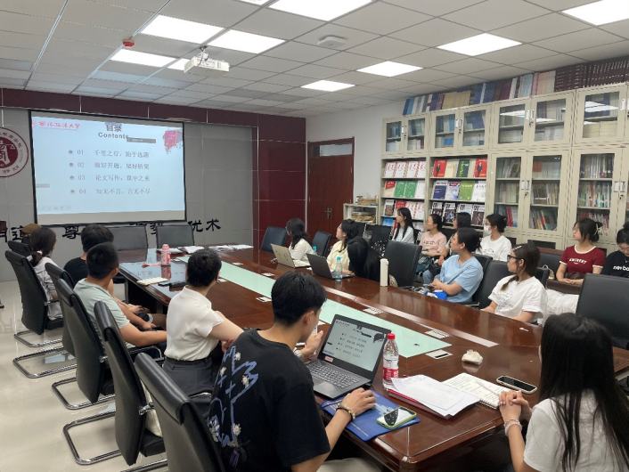 活动中,肖林分享了自己的研究经历及成果,他从论文选题、内容写作、论文修改、如何投稿四个方面为同学们分享学术写作经验。杨晓军为同学们详细讲解了选题原则、选题方法和选题时出现的常见问题,并对开题、写作方面的注意事项进行了强调。互动交流环节,同学们踊跃发言,两位同学仔细耐心地回答了大家提出的问题。