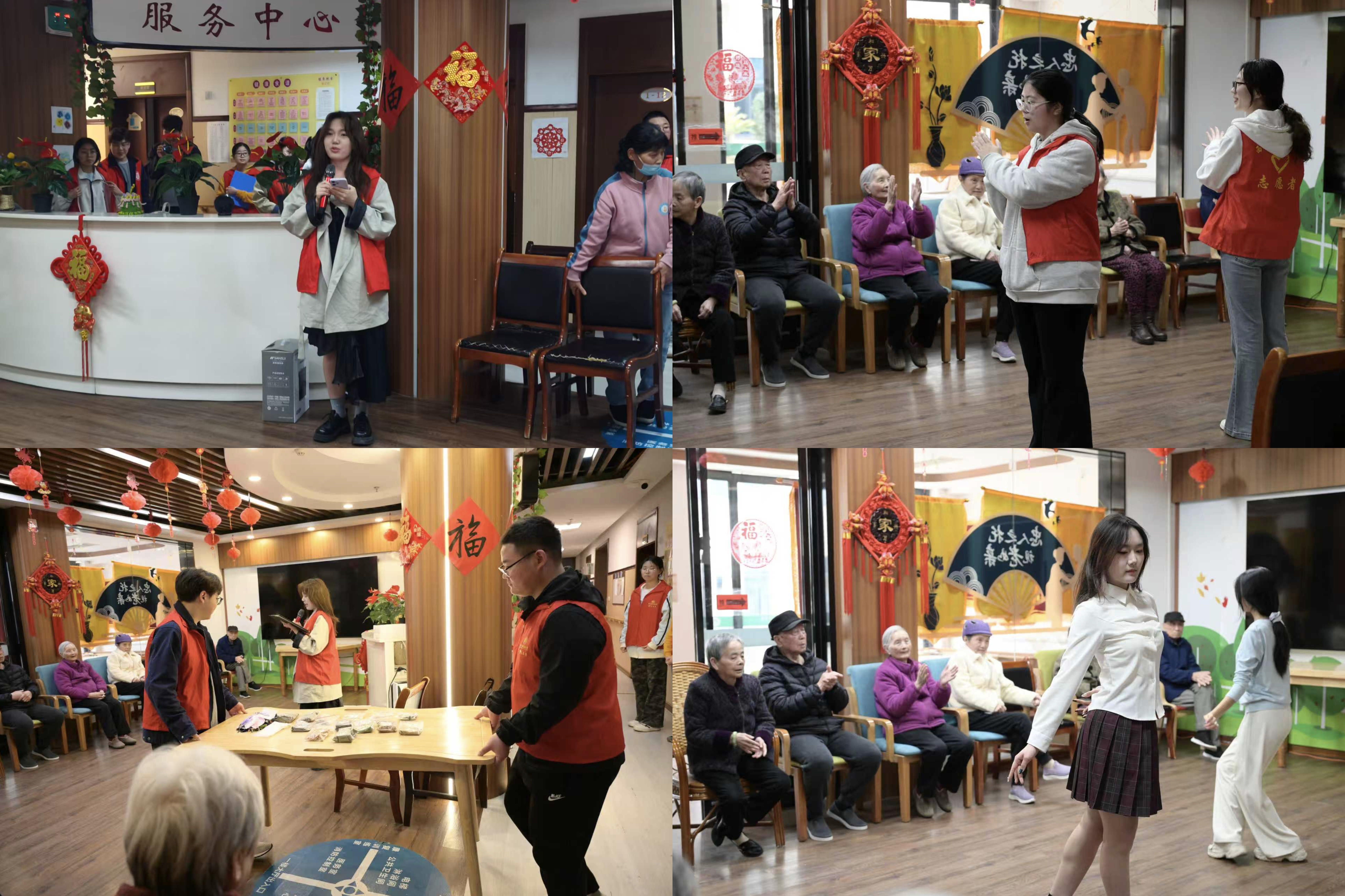 活动现场,志愿者带来了丰富多彩的文艺表演。《寄明月》《小城谣》等舞蹈古韵悠扬、舞姿灵动,诗歌朗诵《面朝大海,春暖花开》温暖真挚,活力满满的韵律操《拍皮球》将现场氛围推向高潮,赢得老人们的阵阵掌声。