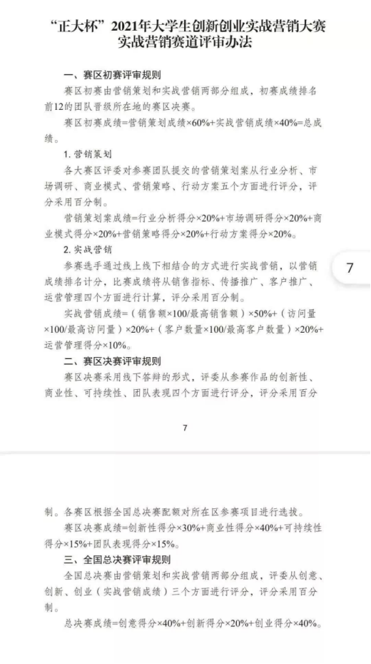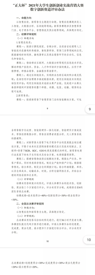 以下为“正大杯”2021年大学生创新创业实战营销大赛实战营销赛道评审办法、“正大杯”2021年大学生创新创业实战营销大赛数字创新赛道评审办法相关文件: