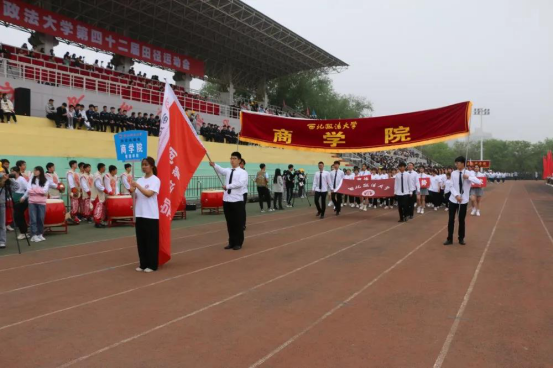 上午九时,校党委书记孙国华宣布第42届运动会正式开幕。伴随着整齐嘹亮的口号声,学生方阵和教师代表方阵依此入场,他们朝气蓬勃、英姿勃发,自信昂扬的步伐彰显着西法大人的精神面貌。