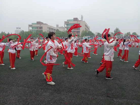 随后进行各学院团体操表演。鼓声阵阵,绸带飞扬,MX动漫