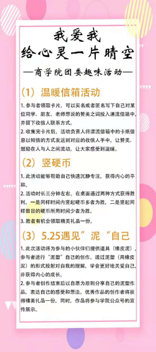 学生会将于5月24日到5月25日在校内开展“5.25心理健康活动”,由志愿者们为政法学子普及心理常识。