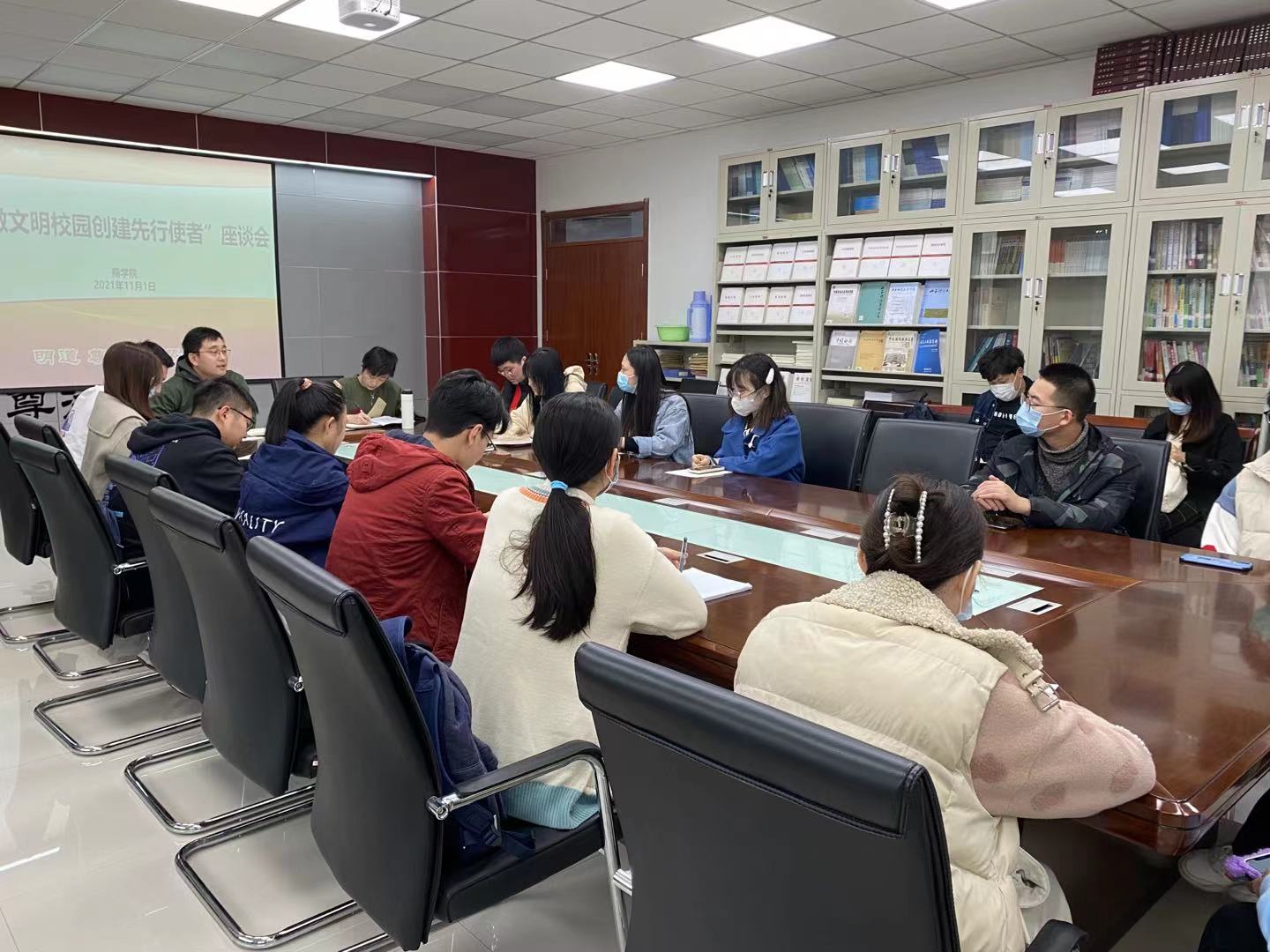 11月1日,MX动漫 召开“争做文明校园创建先行使者”主题座谈会。学院党委副书记蔺媛及各年级本科生、研究生学生代表出席座谈会。会议由学院团委书记周迪主持。