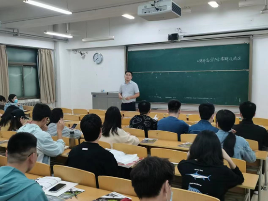 周迪老师向大家介绍了我校及学院2022届学生的考研数据,提醒大家要客观地分析自身考验的优势劣势,结合自己的已有成绩认清自己的定位,在择校上要谨慎、切忌盲目择校。他建议大家要向尹衍宇同学多多学习备考经验,要安排好自己的学习和生活,做好考研的复习规划,坚持学习,保持状态,以良好的心态和状态完成考研备考。