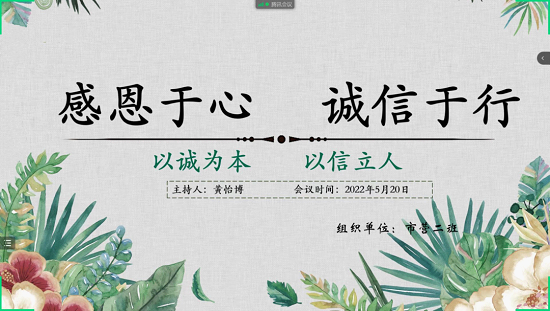 为增强学生对诚信感恩的思想认同和情感认同,引导学生树立诚信自我、感恩社会的价值观,提高学生的思想道德素养,深化资助育人功。MX动漫 2019级各班于近日组织开展“感恩于心,诚信于行”主题系列班会。