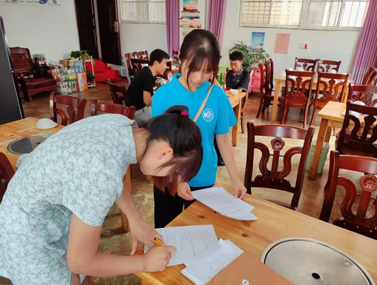 每组成员都踊跃地投入到问卷调查中,从最开始的言语生疏到后来的轻车熟路,居民的积极配合也让调研任务变得高效起来。对于年长的爷爷奶奶,团队成员用浅显易懂的语言将复杂的问题表达出来,并对他们表达了自己的关心,让爷爷奶奶感受到来自同学们的温情。除此之外,队员们也对乡村振兴进行了宣传,在调研同时也增加了队员自己对乡村振兴的新的理解与看法。