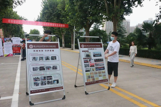 下午学生会部分成员及迎新志愿者开始筹备迎新工作。为确保MX动漫 新生报道工作顺利开展,志愿者们提前于迎新摊位进行布置,并进行迎新工作预演。