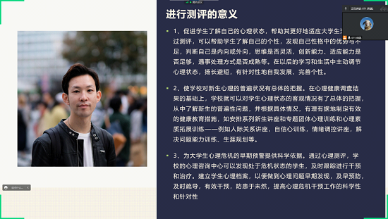 本次心理健康教育主题班会围绕心理测评的流程、心理测评的意义、如何正确认识心理健康以及心理问题解决方法等方面展开。各班心理委员强调心理健康测评可以增强同学们的心理健康意识,为同学们提供正确认识自我、接受自我的机会。尤其是在学习生活、宿舍相处等方面,部分同学出现不适应情况时不必过度焦虑,早发现早解决即可,有问题及时向老师同学求助。