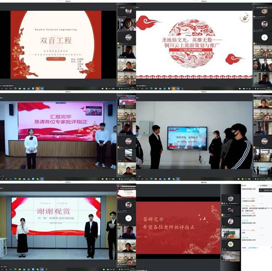 大赛自2022年7月启动至今,共有44所高校、160支队伍踊跃参加。结合疫情防控工作要求,高校选拔赛于线上举办。160支队伍通过腾讯会议在五个分赛场进行比赛。本次高校选拔赛沿袭以PPT路演及现场答辩的方式进行,各参赛队伍逐一展示方案中的创新亮点,为陕西省红色旅游市场发展和乡村振兴提供高校方案,选手们自信从容,展现出了自己的专业知识与综合能力。评委老师有针对性地指出不足,并提出对选手们的希冀,希望同学们认真打磨方案,为助力我省巩固拓展脱贫攻坚成果同乡村振兴有效衔接提供专业支持。