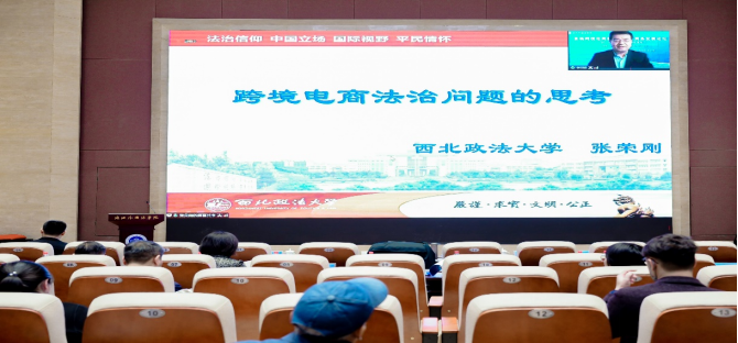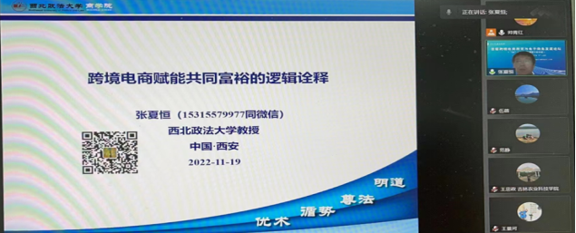 本次会议是由浙江省商务厅、中国(杭州)跨境电商综合试验区建设领导小组办公室、浙江外国语学院联合主办,旨在搭建一个全国跨境电子商务教学、研究与未来发展的学术交流平台,促进全国电子商务和跨境电商产业的发展,为加快建设中国式现代化产业体系构架做出积极贡献。会议采取“线上+线下”的方式进行,主论坛中张荣刚教授以跨境电商中产生的法律问题为切口,深入剖析了跨境电商行业发展下出现的法治问题,张夏恒教授则在“电子商务研究与发展论坛”分论坛中作了题为“跨境电商赋能共同富裕的逻辑诠释”的报告。