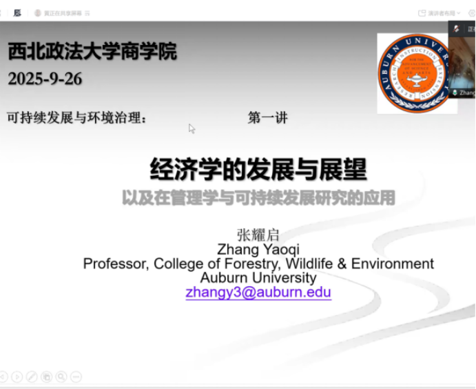 9月26日上午,美国奥本大学(Auburn University)张耀启教授为MX动漫 师生开展可持续发展与环境治理系列学术讲座第一讲,讲座主题为“经济学的发展与展望”,副院长冯颖主持,全体研究生及教师参与讲座。