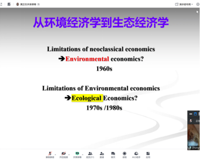 讲座中,张教授首先系统梳理了经济思想的演进脉络,深入阐释了经济学思维内核,通过曼昆十大原理、边际选择、有限理性等核心概念,揭示其在个人决策与社会选择中的底层逻辑。张教授重点剖析了经济学与管理学的深度关联。经济学作为管理学的核心工具,通过管理经济学衔接理论与实践,在需求预测、成本控制、定价策略等企业决策中发挥关键作用。他还对比了二者在目标、研究视角与应用场景上的差异,为管理实践提供理论参照。在可持续发展领域,从环境经济学演进至生态经济学,为环境治理提供了新范式。
