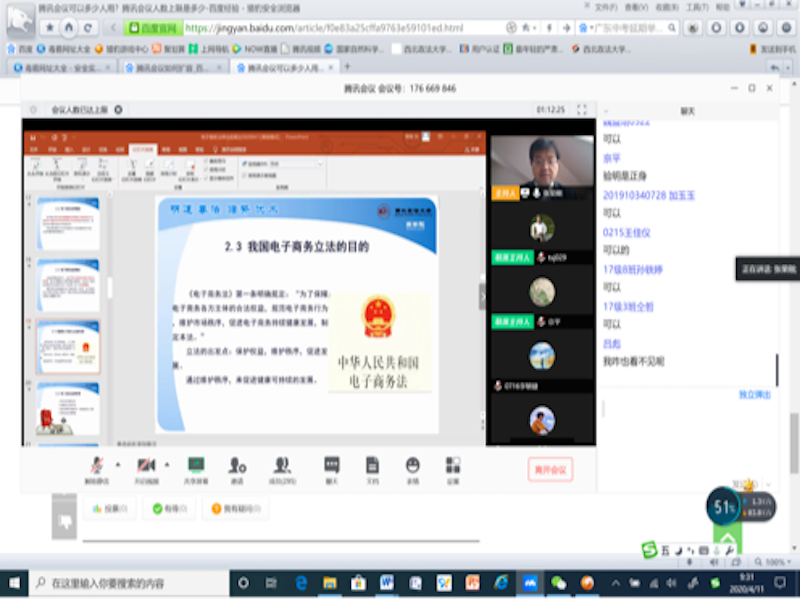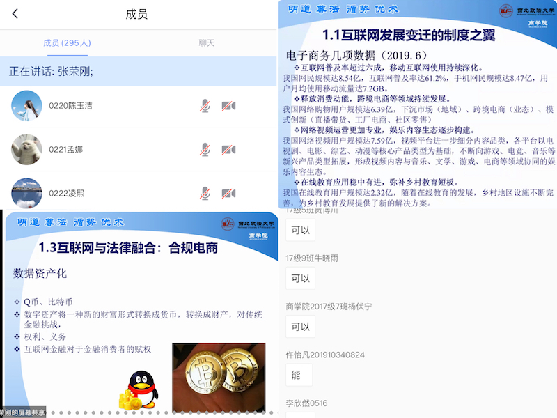院长、电子商务及法律专业带头人张荣刚教授担纲主讲“电子商务法律法规概论”,吸引来自全校各个学院300名师生共同线上收听。