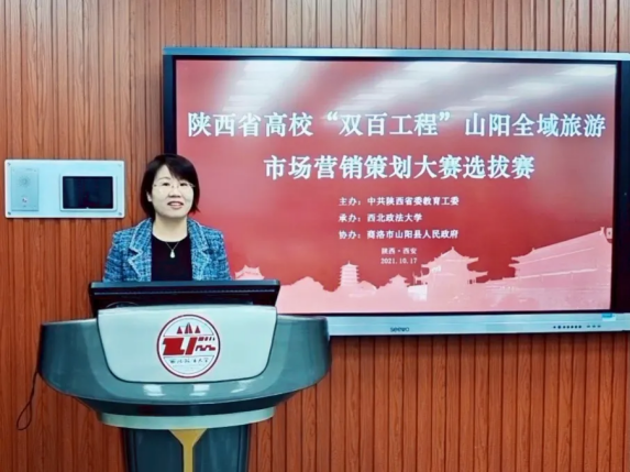 西安培华学院经济系主任关娜作为教师代表发言。她表示“双百工程”市场营销赛事已经成为全省参与高校广、报名人数多、知名度高的专业品牌赛事。比赛举办为山阳县旅游经济发展提供了新的创意,增进了学生、社会对山阳县的了解。