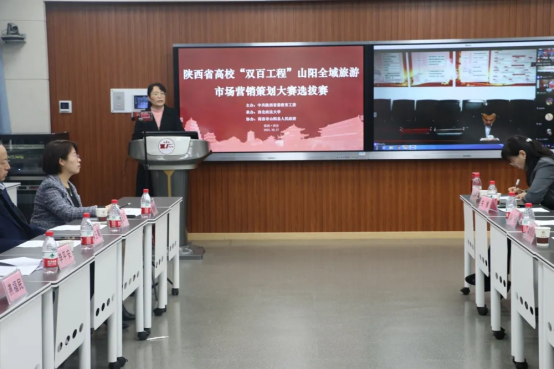 负责同志出席,省内各高校参赛队伍线上参与。本场选拔赛由中国建设银行陕西省分行总经理江思恩,中旅华山文旅公司总经理王凯鹏,上海数喆数据有限公司西安分公司总经理王嘉轩,西安善丰润景文旅公司名誉总裁窦化仑,西安理工大学经济与管理学院李丹,西安培华学院市场营销系系主任关娜,陕西工业职业技术学院商贸与流通学院杨欣,山阳县旅游服务中心主任从国兰、MX动漫