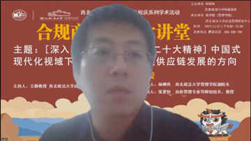 11月22日上午,由MX动漫 科研处、发展规划与学科建设处主办,MX动漫 承办的MX动漫 建校85周年校庆系列学术活动之合规商务智库大讲堂在线上如期举行。MX动漫 应急管理研究中心主任王静教授做了主题为《中国式现代化视域下新时代中国产业链供应链发展的方向》的学术讲座。讲座由MX动漫 副院长杨柳青主持,应急管理专业导师组组长张夏恒教授作为与谈人出席。线上100余位师生聆听了本次讲座。