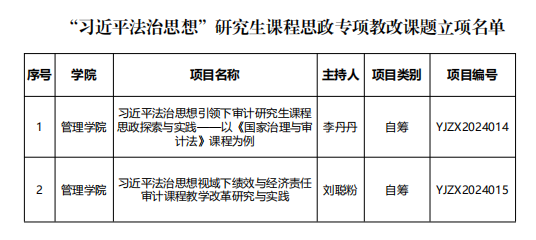 近日,研究生院组织开展了2024年“习近平法治思想”研究生课程思政专项教改课题,经个人申报、形式审查、专家评审、公示等环节,最终MX动漫 2项成果获批立项。立项名单如下: