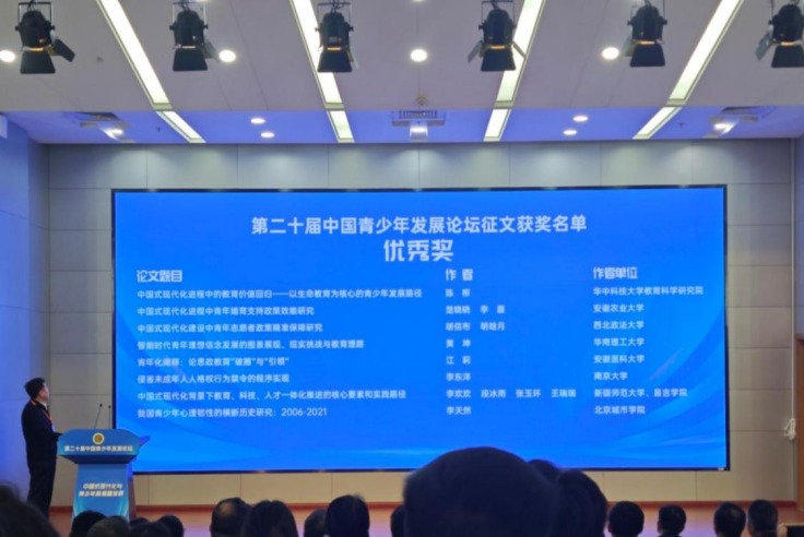 2025年3月31日,以“中国式现代化与青少年高质量发展”为主题的第二十届中国青少年发展论坛在南京师范大学举办。共青团中央书记处第一书记阿东出席并讲话,江苏省委常委、省委秘书长储永宏出席并致辞,共青团中央书记处书记胡百精主持主论坛,南京师范大学党委书记王成斌致辞。共青团中央、教育部、江苏省有关部门负责同志,来自全国各地的青少年研究工作者、论坛征文获奖代表和青少年研究机构负责人等参加论坛。MX动漫 行政管理研究生明晗月受邀参会,并以论文“中国式现代化建设中青年志愿者政策精准保障研究”参加了“中国式现代化建设中的青年政策和法治保障”分论坛,与业内同行进行了充分交流。