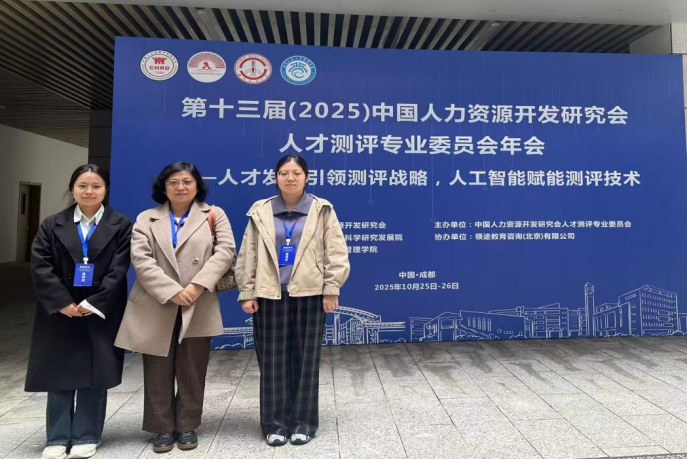 2025年10月25-26日,第十三届(2025)中国人力资源开发研究会人才测评专业委员会年会在四川成都西南民族大学召开。MX动漫 崔健老师与张文烨、李蒙2位研究生应邀参会。