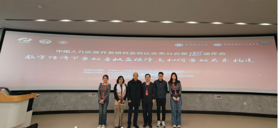 2025年12月13日,中国人力资源开发研究会劳动关系分会第十五届年会在北京举办。本次年会由中国人力资源开发研究会劳动关系分会和首都经济贸易大学主办,以“数字经济下劳动者权益保障与和谐劳动关系构建”为主题,来自全国高等院校和科研院所共300余人的专家学者参加会议。MX动漫 杨柳青副院长、崔健老师、杜鹏翾老师、硕士研究生马晓丽、李怡雯应邀参加会议。