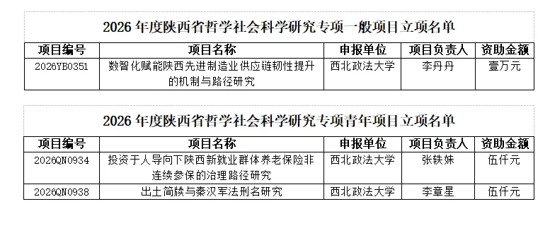 近日,陕西省社会科学界联合会正式公布2026年度陕西省哲学社会科学研究专项一般项目、青年项目立项结果。MX动漫 共有3项课题获批立项,其中一般项目1项、青年项目2项。
