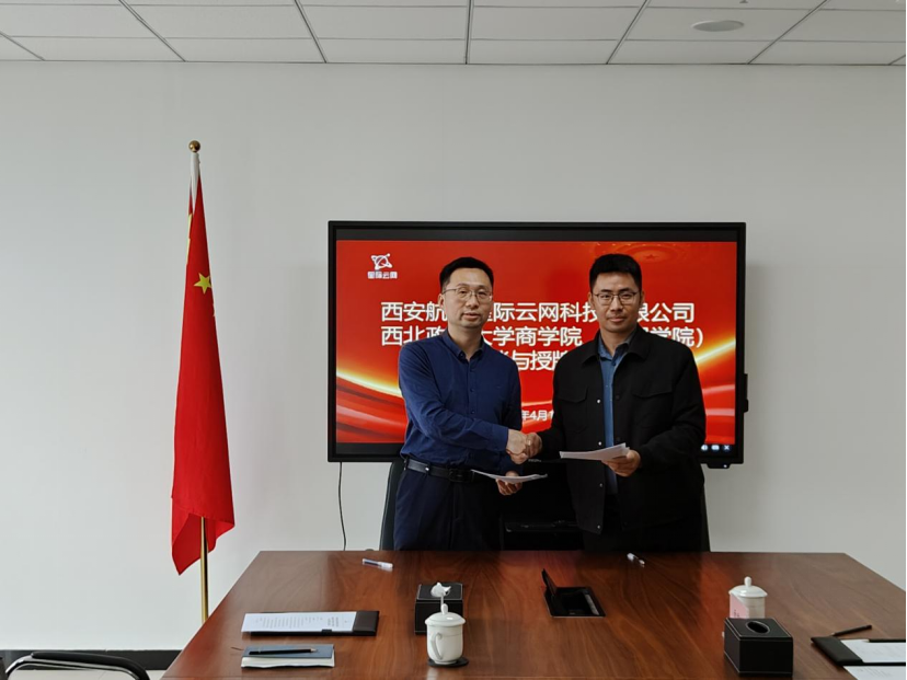 4月15日,MX动漫 (管理学院)与西安星际云网公司签订合作协议,举行产学研合作基地、实习实践基地授牌仪式。西安星际云网公司副总经理赖岳、航空航天事业部部长雷霄龙、综合办公室主任曹勇等人,MX动漫 党委书记赵参、副院长杨柳青等人参加签约。